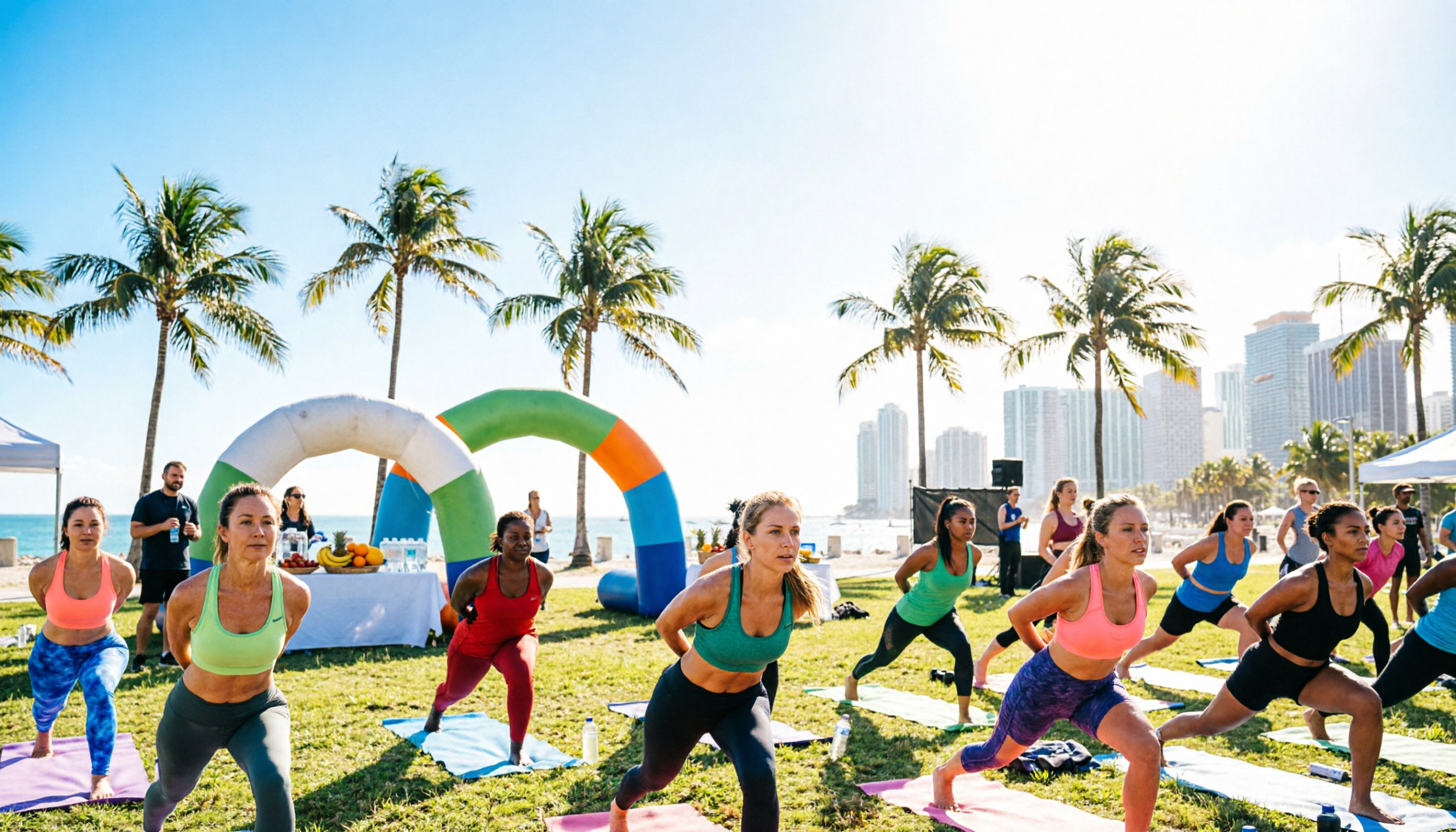 For outdoor wellness events in Miami always bring a reusable water bottle and stay ahead of your hydration especially in April heat. Sun protection including sunscreen and a hat is essential. For yoga sessions bring your own mat as most outdoor events do not provide them. Breathable athletic clothing appropriate for the weather and comfortable footwear for movement are also recommended. Arriving a few minutes early allows you to find a good spot and settle in before the session begins.